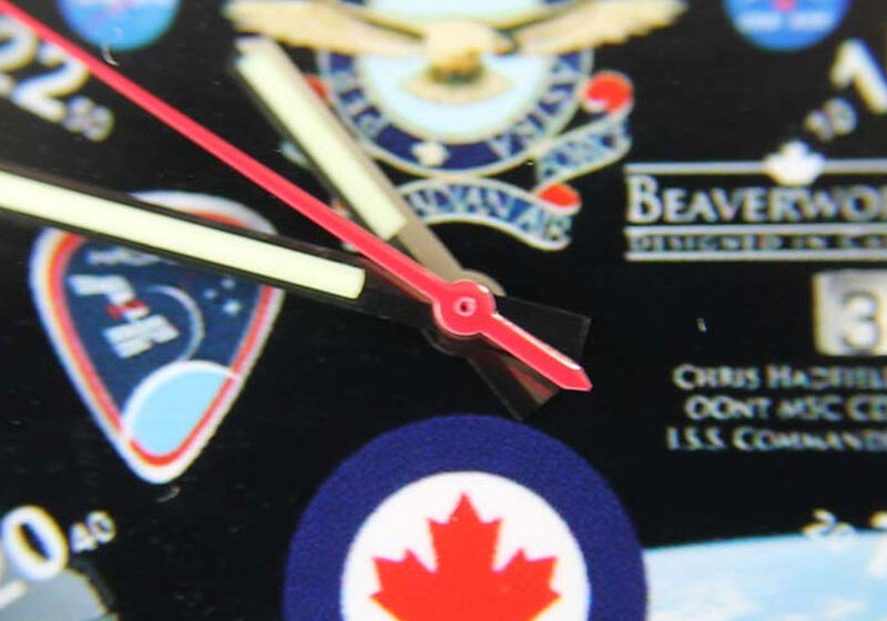 Featured above is a special watch we created and gifted to RCAF Colonel, Canadian astronaut, and first Canadian to command the International Space Station — Commander Chris Hadfield.