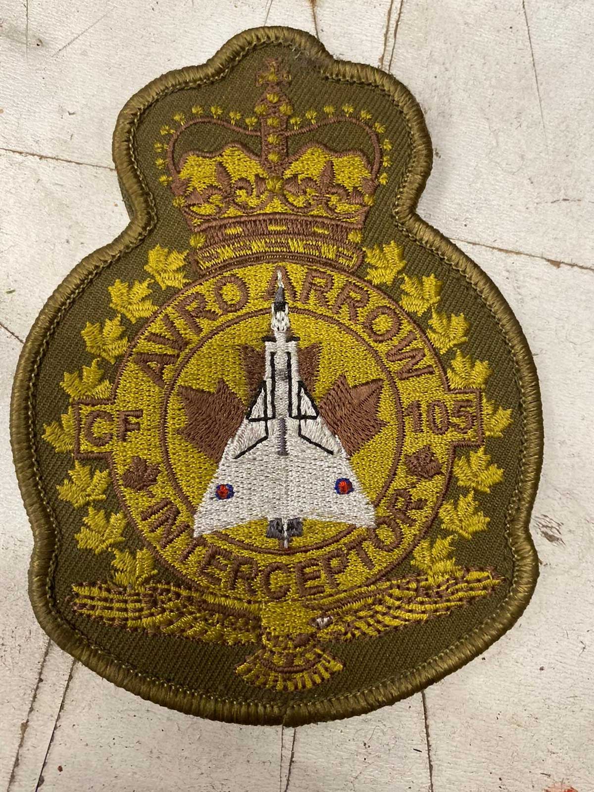 Avro Arrow embroidered military flight badge with Velcro backing. Each badge is $25.00 + GST and shipping is $10.00 for shipping and handling per badge. This is part of our expanding product line which honours the history and legacy of the Royal Canadian Air Force. There is no limit on how many badges you can order. For small orders, we will only use a basic envelope and stamp to keep costs to a minimum. For larger orders, we will ensure that they are shipped with express post.