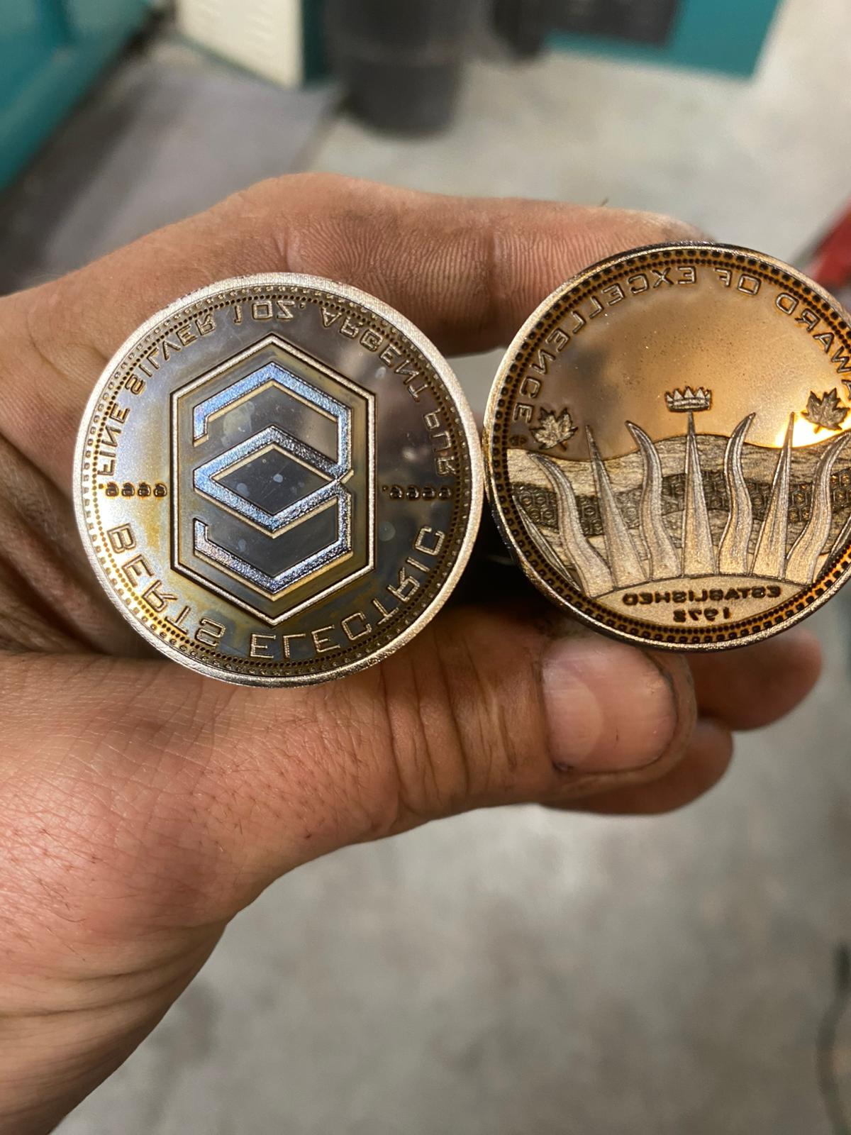 We were approached by Bert’s Electric, a company in British Columbia to produce a limited edition run of 100 fine silver coin awards to present to outstanding employees. This gave Beaverworks the opportunity to pressurise our entire system with a small run to see how it all performs and better understand the entire process. Make absolutely no mistake at all, minting is exceptionally difficult at the best of times and it doesn’t take much to ruin entire runs. We ended up having to make these a number of times due to errors which crept in which we were unaware of that it even existed. This allowed us to further deepen our knowledge and expertise which in turn we applied directly into further enhancing the overall quality of this coin. The company was an absolute joy to work with, they personify class and grace and it was a true honour to produce this for them. We were responsible for the design of the coin based on their current logo and the flag of British Columbia as a reference point of inspiration to depart from. We ensured that we drilled down as far as possible in terms of the design and sculpt and optimised the depth of the engraving to ensure we ended up delivering outstanding quality that matches the character of the firm. We of course used .9999 Fine Silver refined by the Royal Canadian Mint.